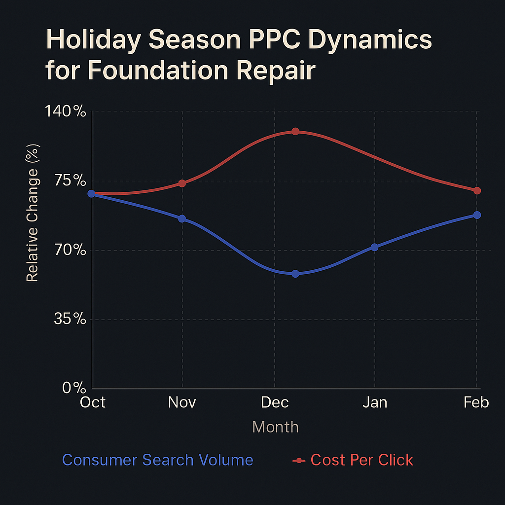 - Decreased Consumer Demand: Fewer homeowners actively search for foundation repair services during the holidays. This drop in search volume means there are fewer opportunities to capture leads.
